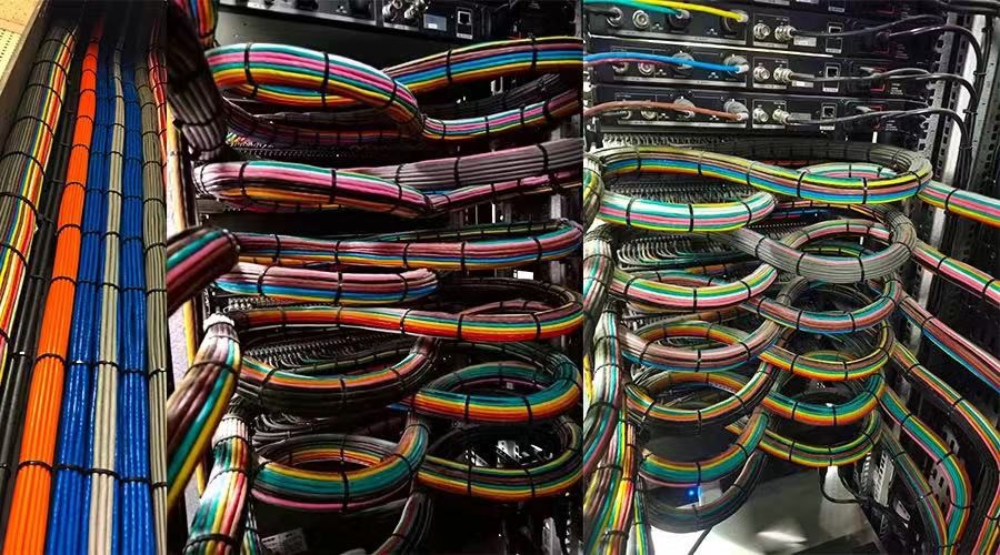 參照JGJ/T16-92民用建筑電氣設計規(guī)范要求,線纜按照類別、顏色,橫平豎直綁扎在橋架內(nèi),綁扎后要能看見明顯的路有走向。